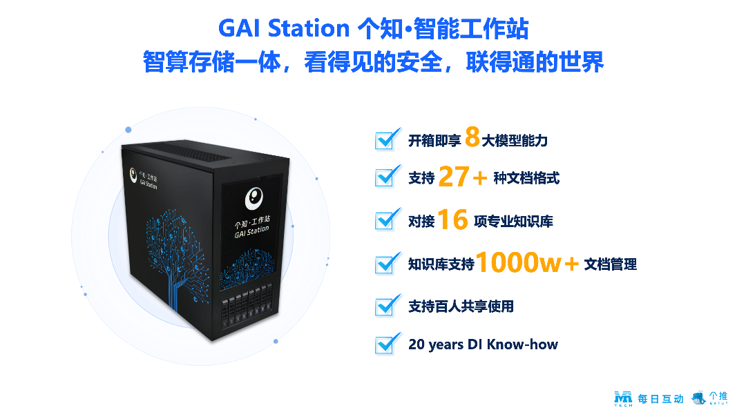 每日互動(個推)成立于2010年,是國內“含數率”最高的上市公司。公司以開發者服務為基礎,不斷夯實數據底層,將數據能力與行業“Know-How”結合提供互聯網運營、品牌營銷、智慧交通、智慧政務等數據智能解決方案。 近年來,每日互動基于“可信數據空間+可控大模型”打造了公共與產業數據價值開發平臺——發數站,促進數據要素價值釋放。同時推出個知智能工作站(GAI Station),為企業及政府提供大模型應用解決方案。