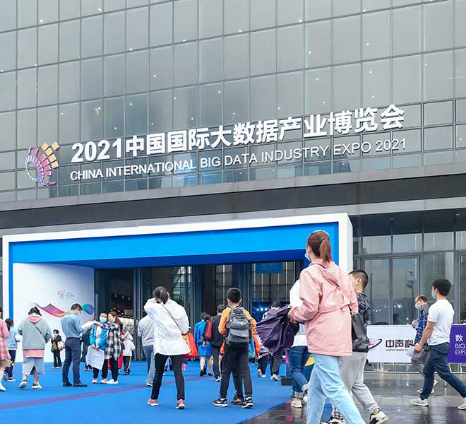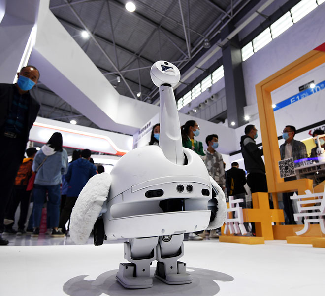 觀眾正在2021數博會展館觀看“機器鵝”表演