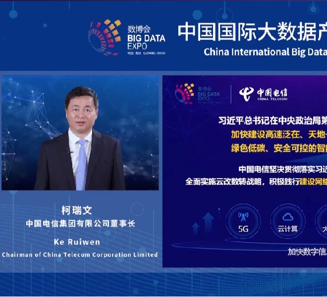 中國電信集團有限公司董事長、黨組書記柯瑞文在2022數博會開幕式上作主題演講