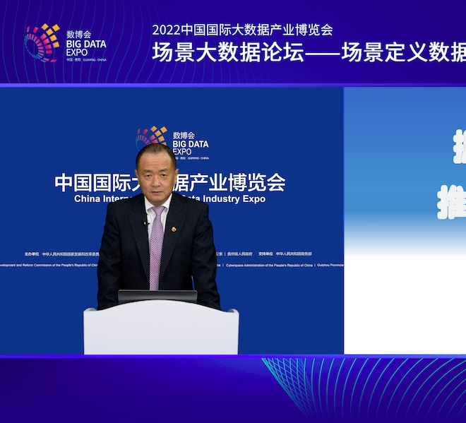 中國科學院院士梅宏在2022數博會場景大數據論壇上作主題演講