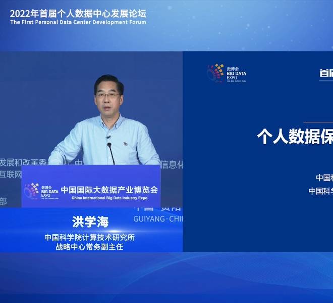 中國科學院計算技術研究所戰略中心常務副主任洪學海在2022數博會首屆個人數據中心發展論壇上作主題演講