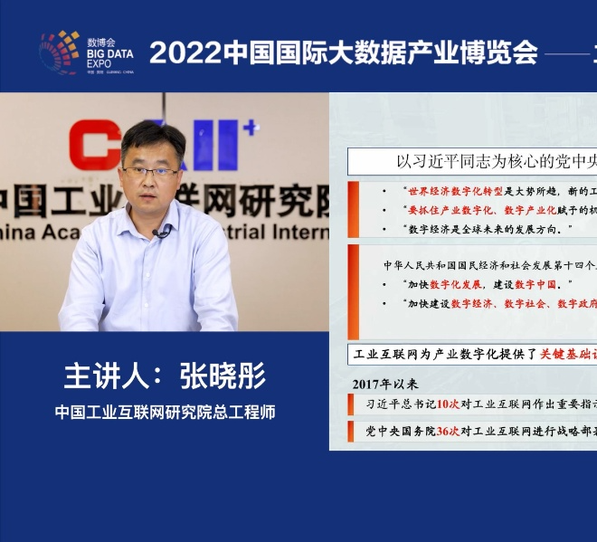 中國工業互聯網研究院總工程師張曉彤在2022數博會“工業互聯網賦能數字化轉型”論壇上作主題演講